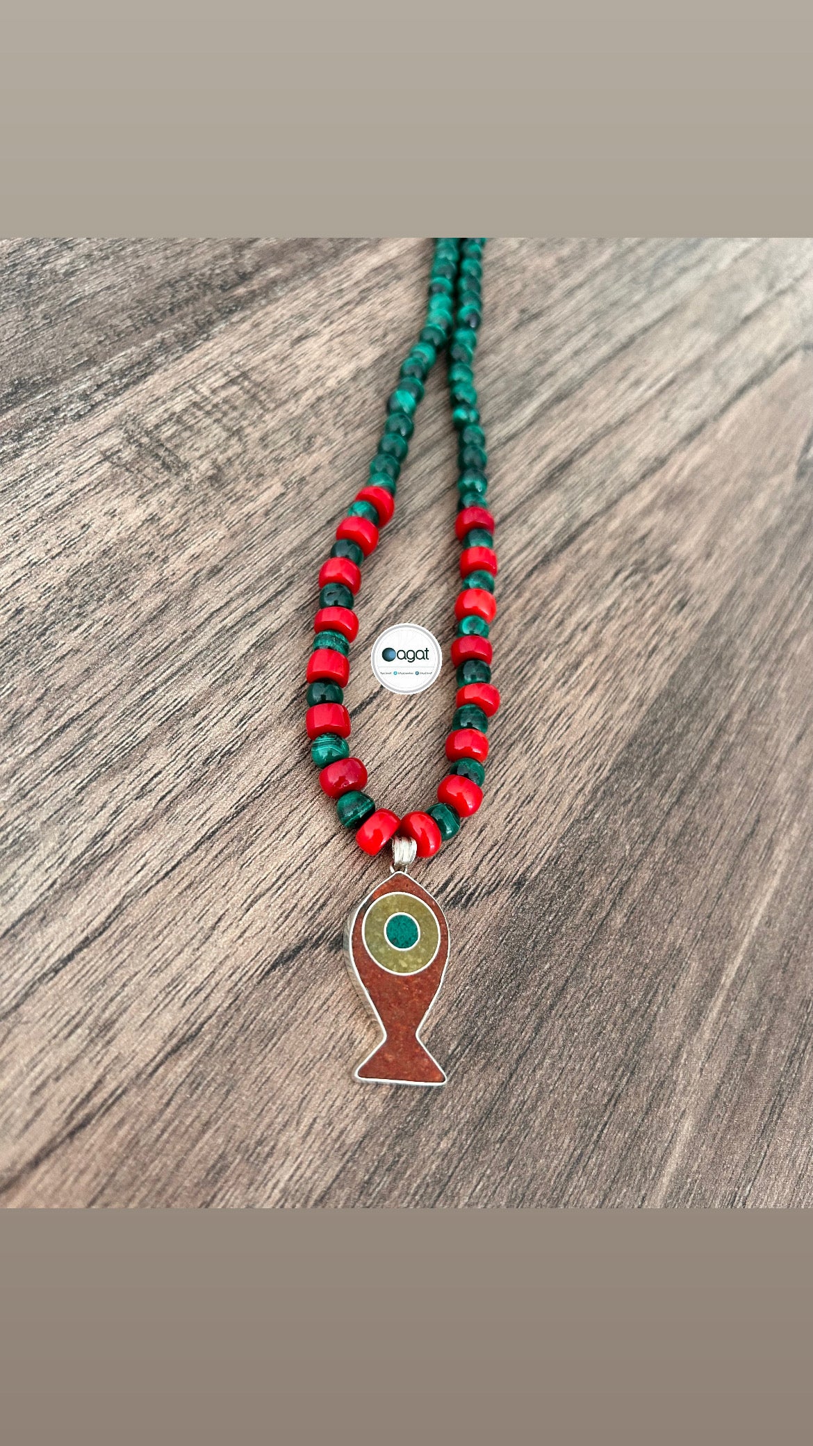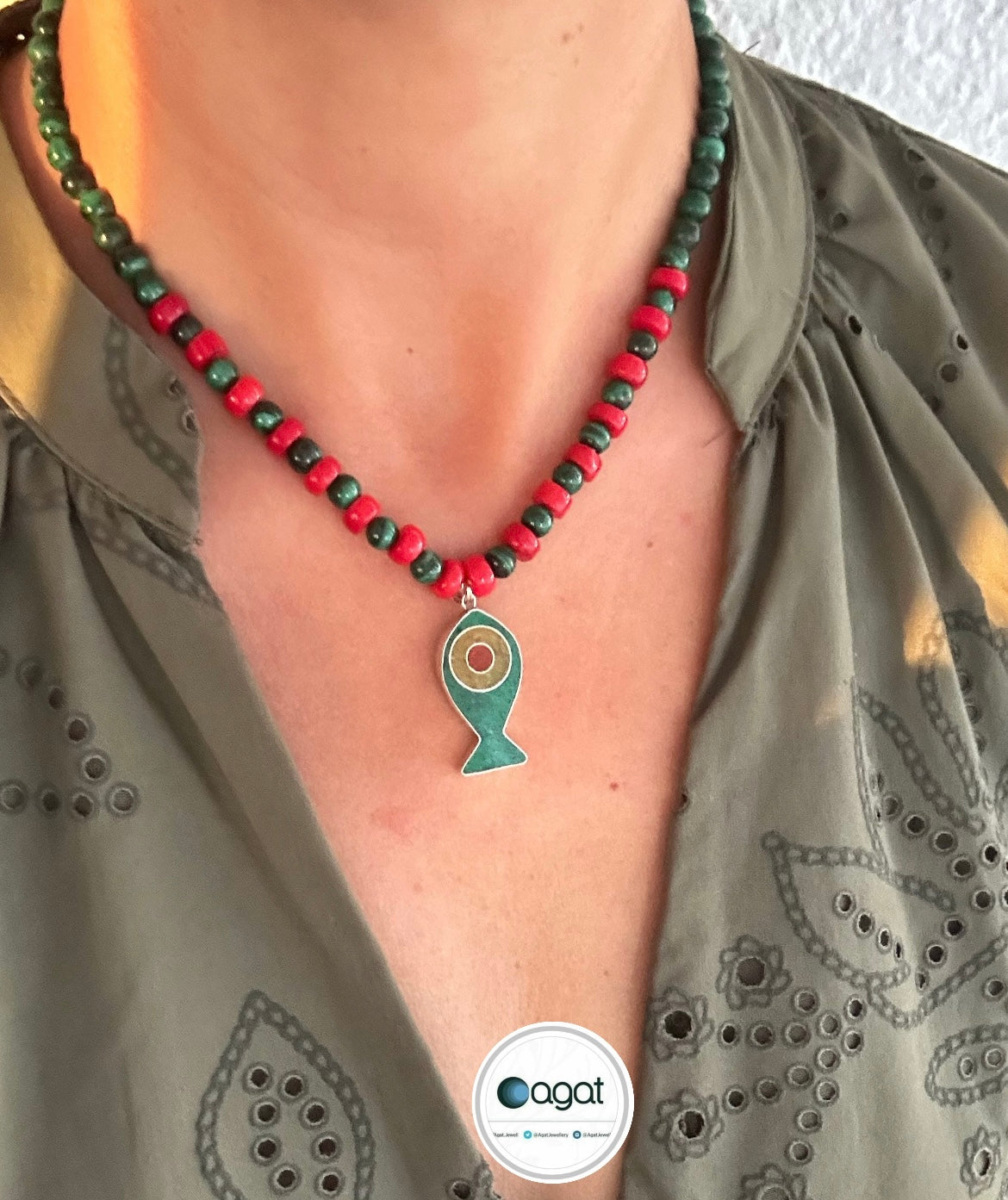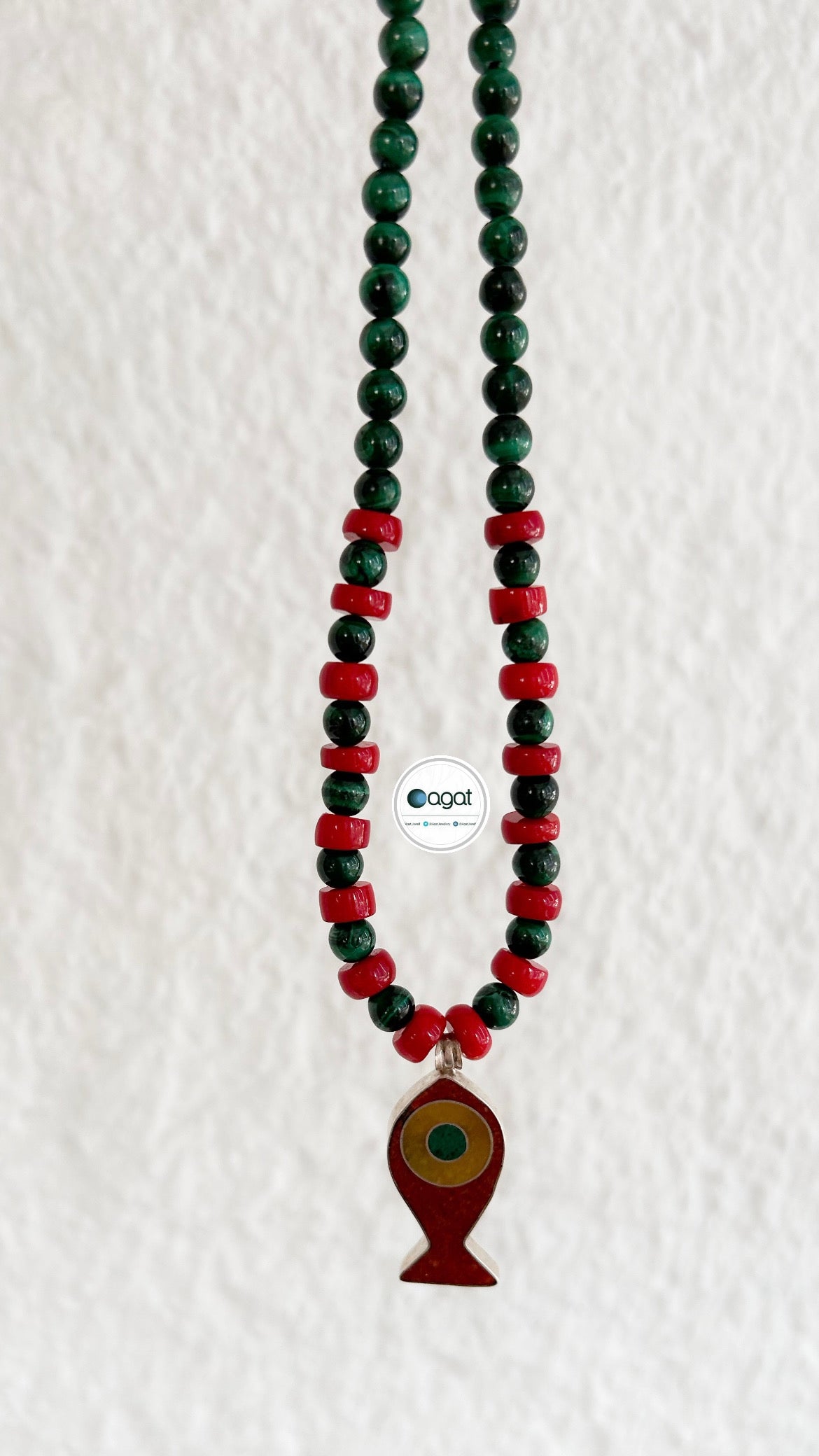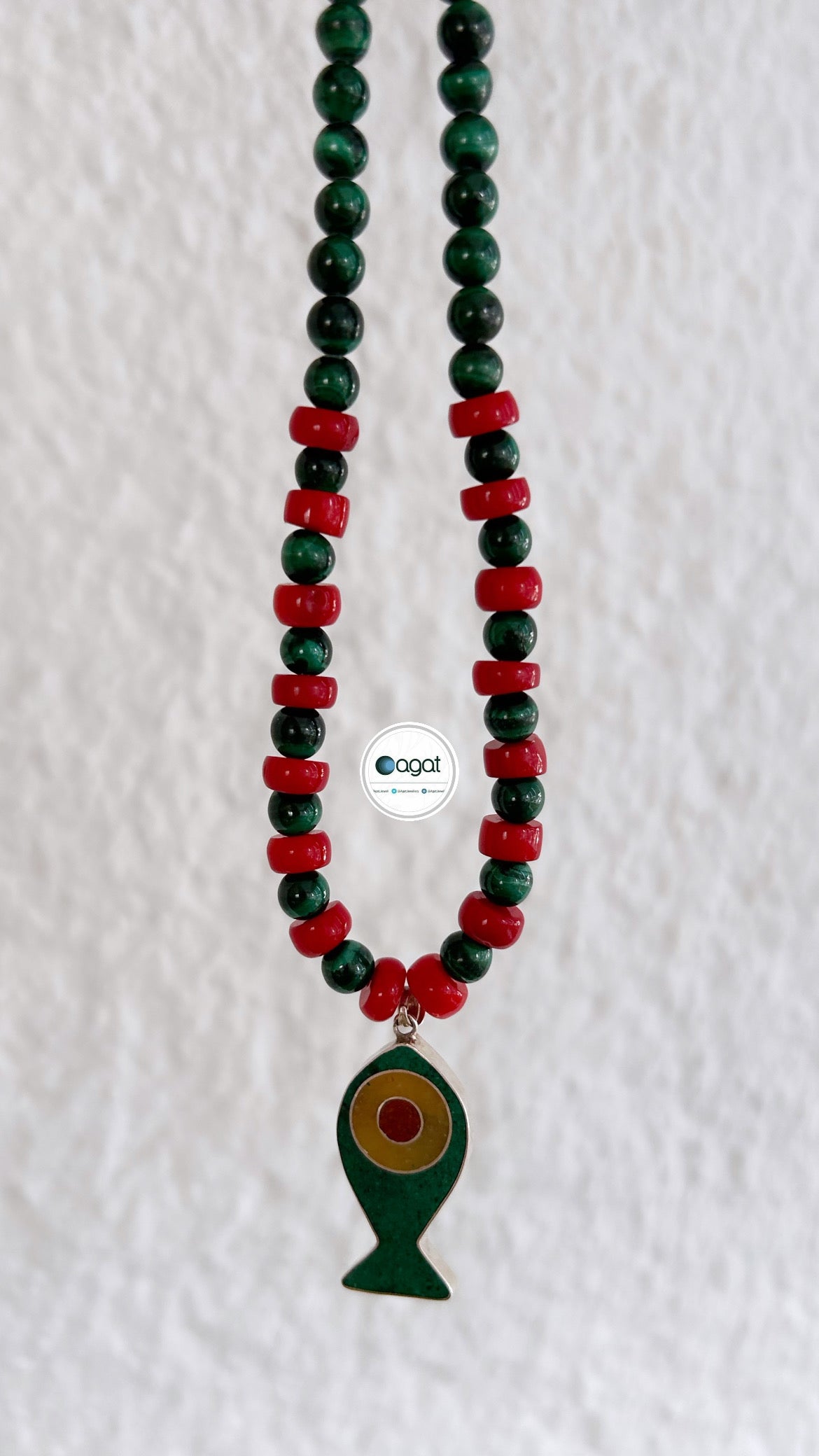Malahit, Mercan ve Kehribar Mozaik Balık Koly
