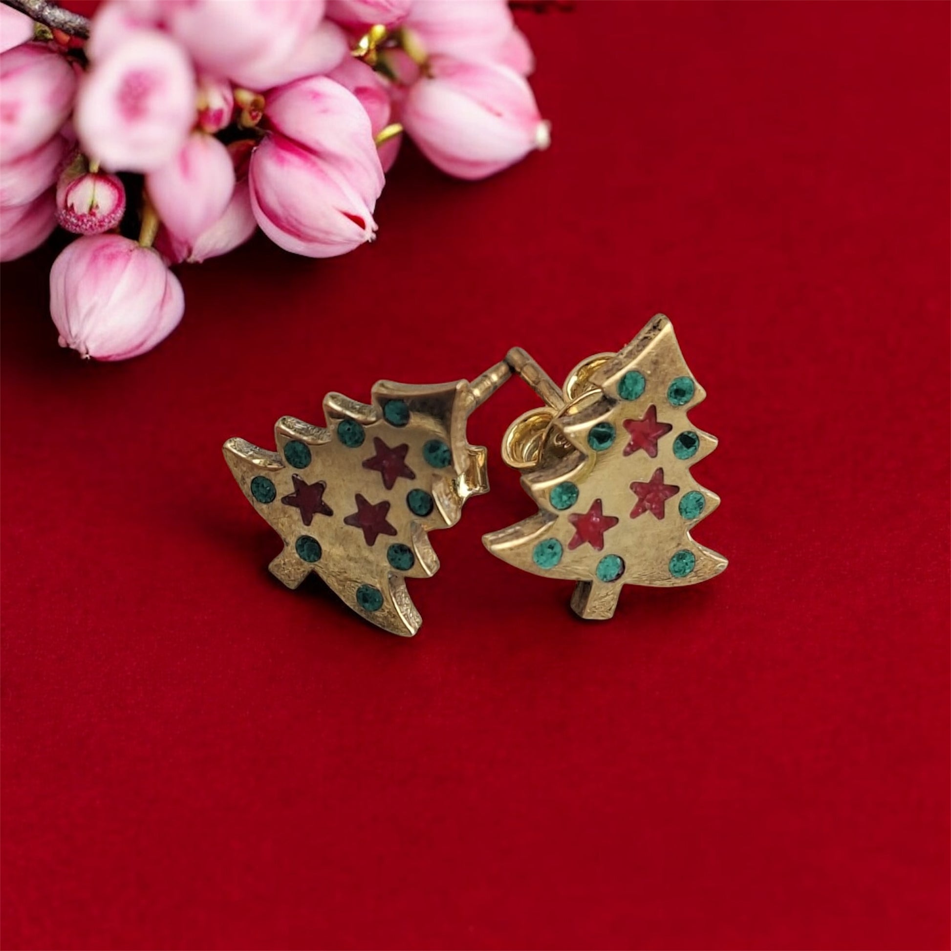Çam ağacı Mercan & Malahit küpe 925 ayar gümüşten el yapımı ile üretilmiştir.