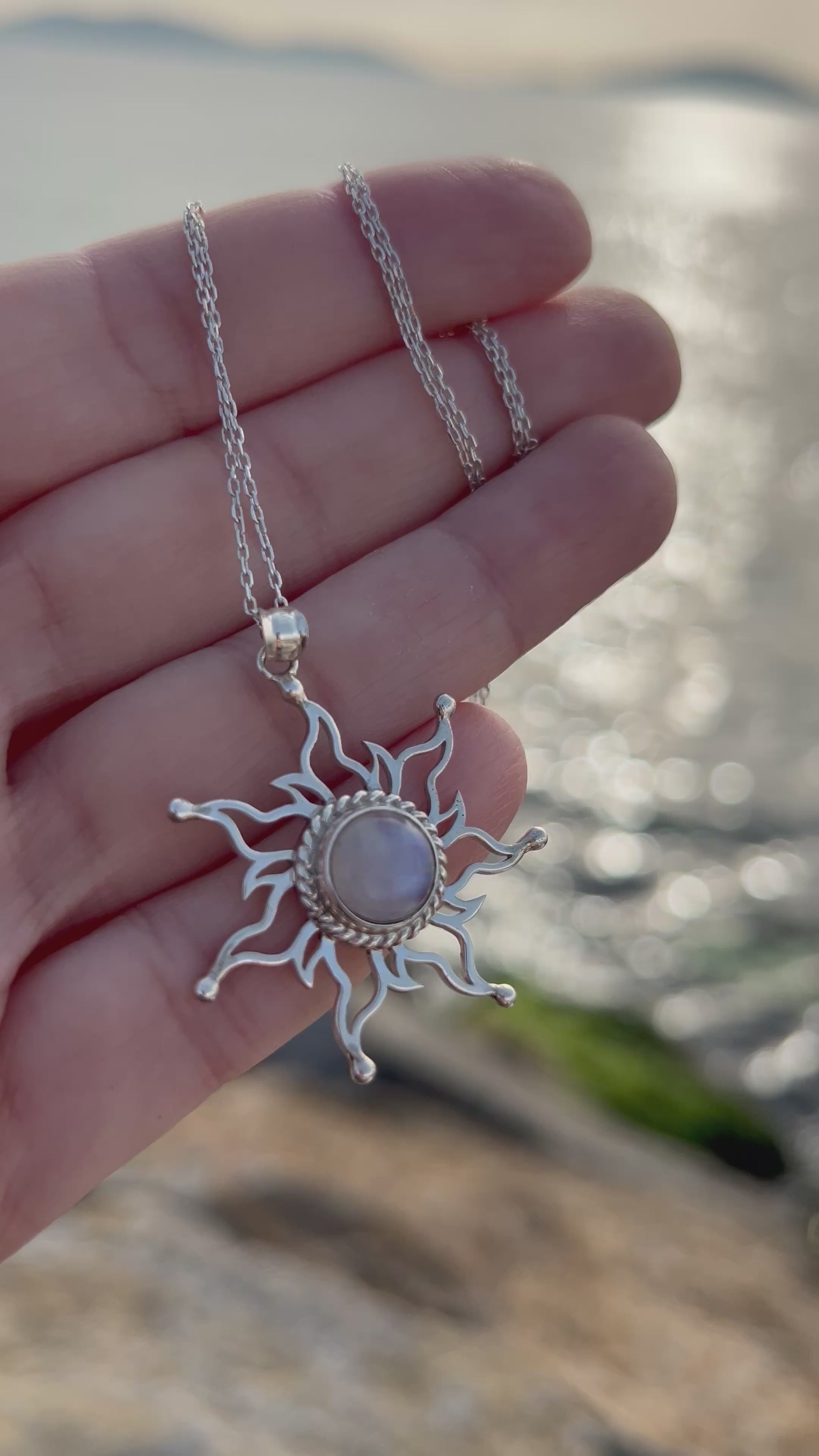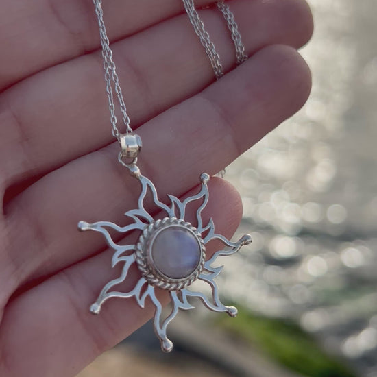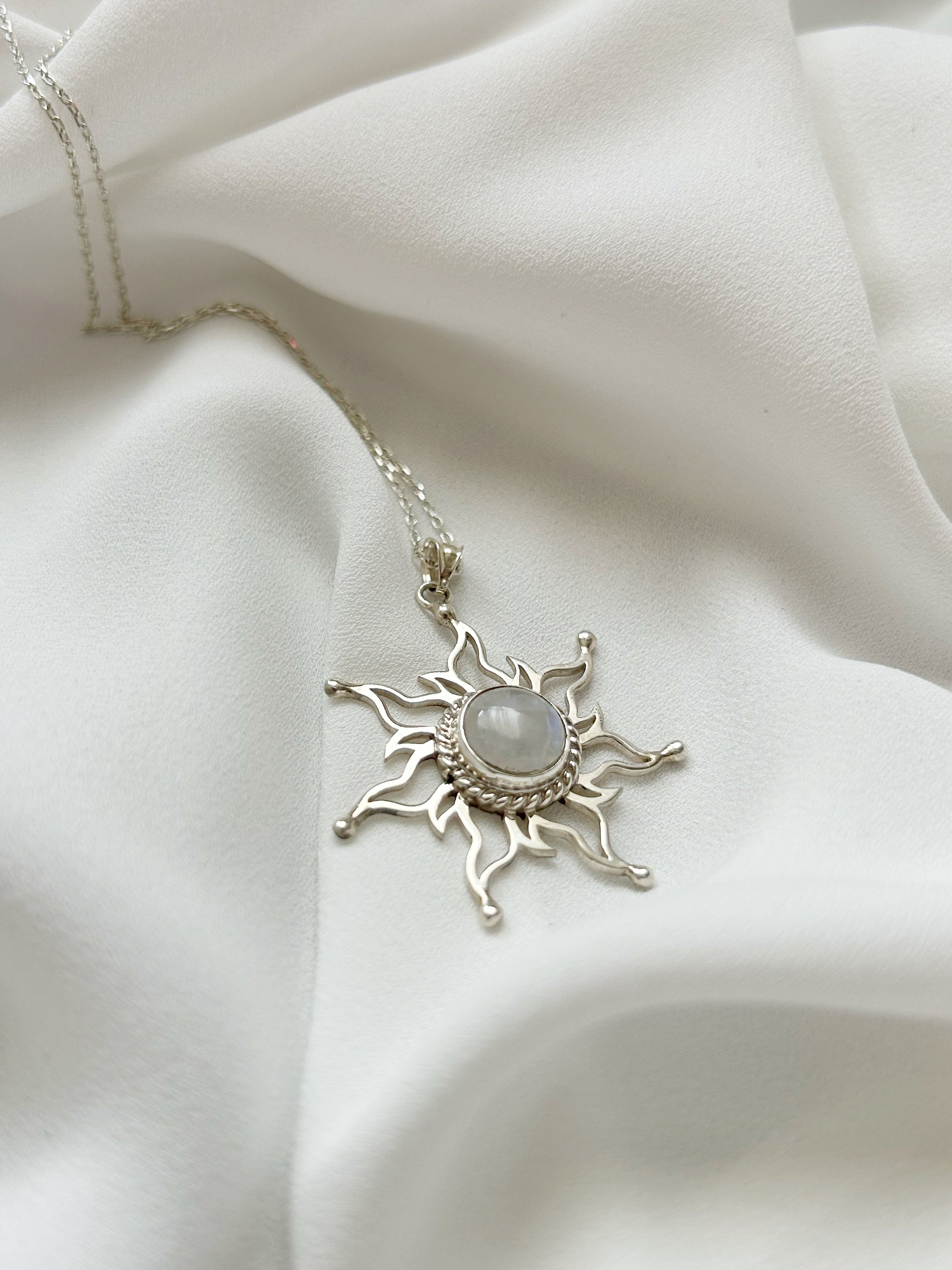 Ay Taşı Gümüş Güneş Kolye – Işığın ve Sırların Buluşması