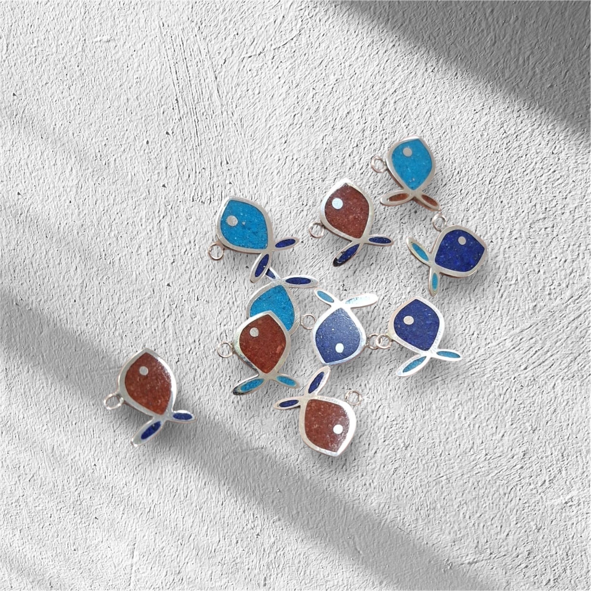 Mercan,Lapis ve turkuaz taşı gümüş mozaik kolye 44 cm zinciri ile