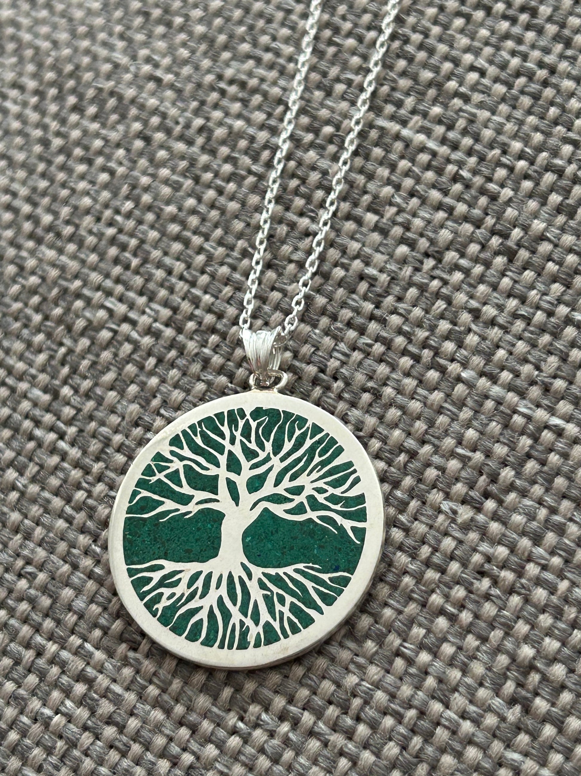 Doğanın güçlü enerjisini taşıyan Malahit taşı ile köklü dengeyi simgeleyen Hayat Ağacı sembolü, ruhunu şifalandıracak eşsiz bir uyumda buluşuyor.