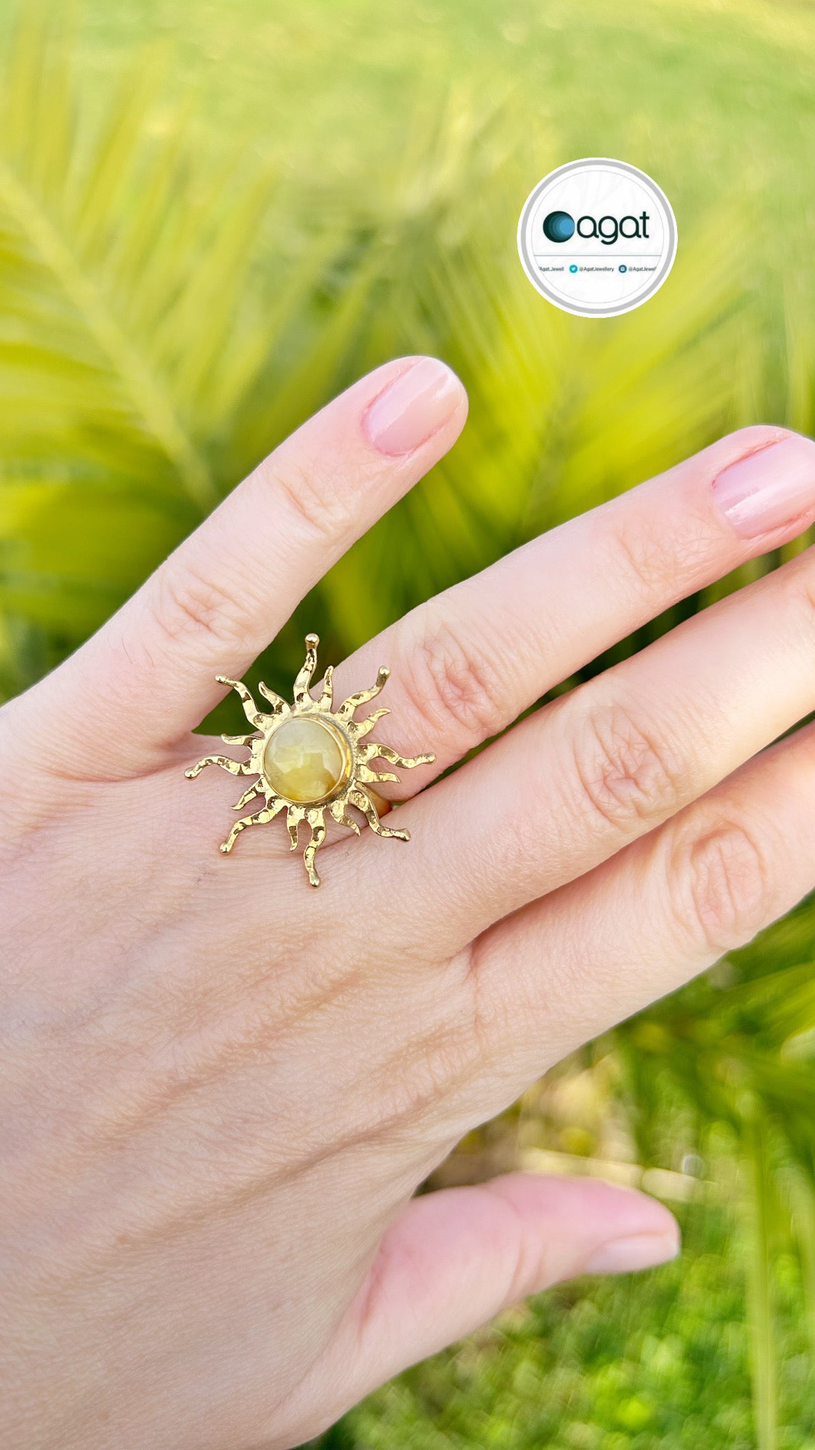Kehribar & Güneş Motifli Gümüş Yüzük – Doğanın Enerjisi Parmaklarınızda