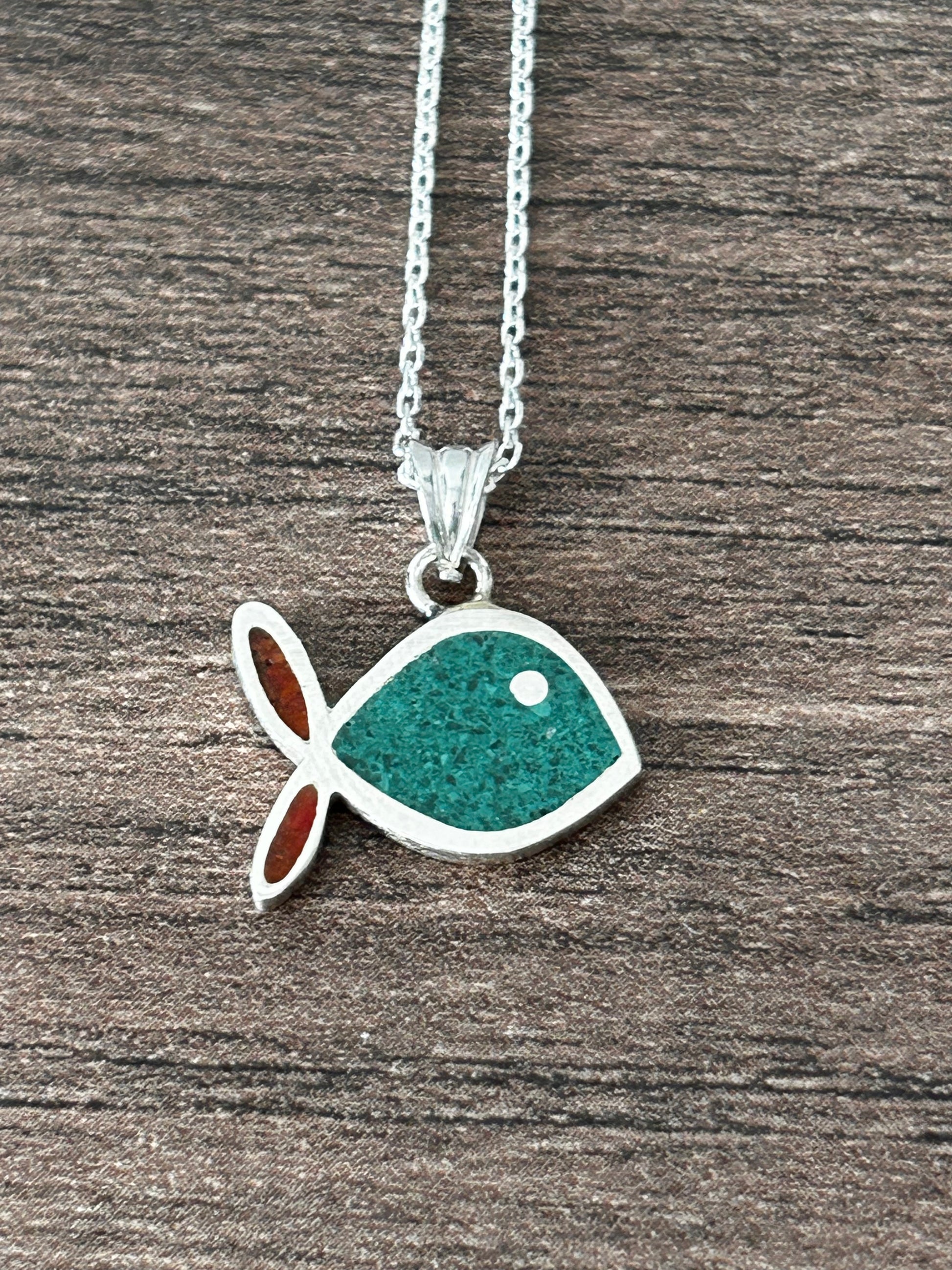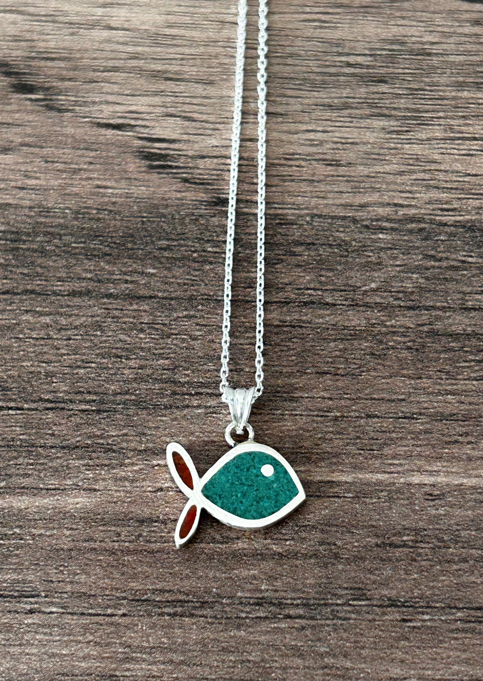 ✨ Malahit & Mercan Mozaik Balık Kolye ✨