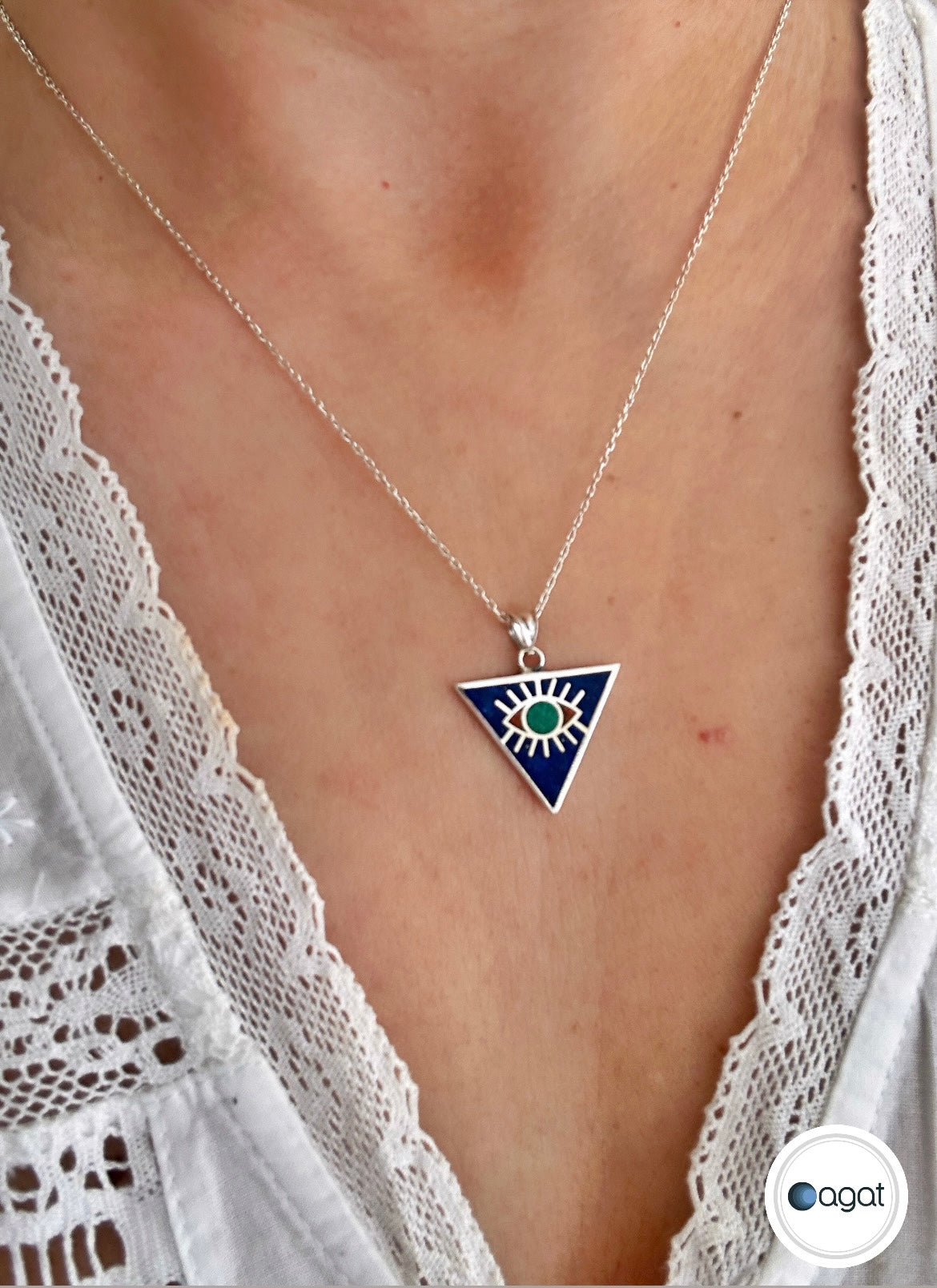Lapis, Mercan, Malahit & Muska Göz Detaylı Gümüş Kolye