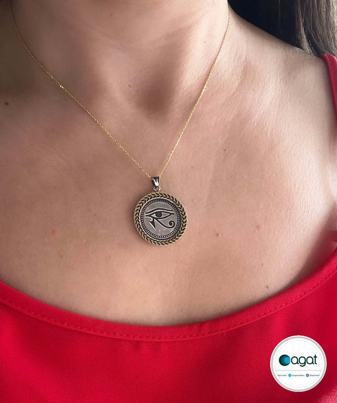 Kadim Mısır’ın mistik sembollerinden biri olan Ra’nın Gözü, koruyucu gücü ve bilgelik ışığıyla bu zarif gümüş kolyede hayat buluyor. Güneş Tanrısı Ra’nın gözünden ilham alan bu özel tasarım; negatif enerjilere karşı bir kalkan, sezgiyi güçlendiren bir rehber ve spiritüel farkındalığın simgesidir.