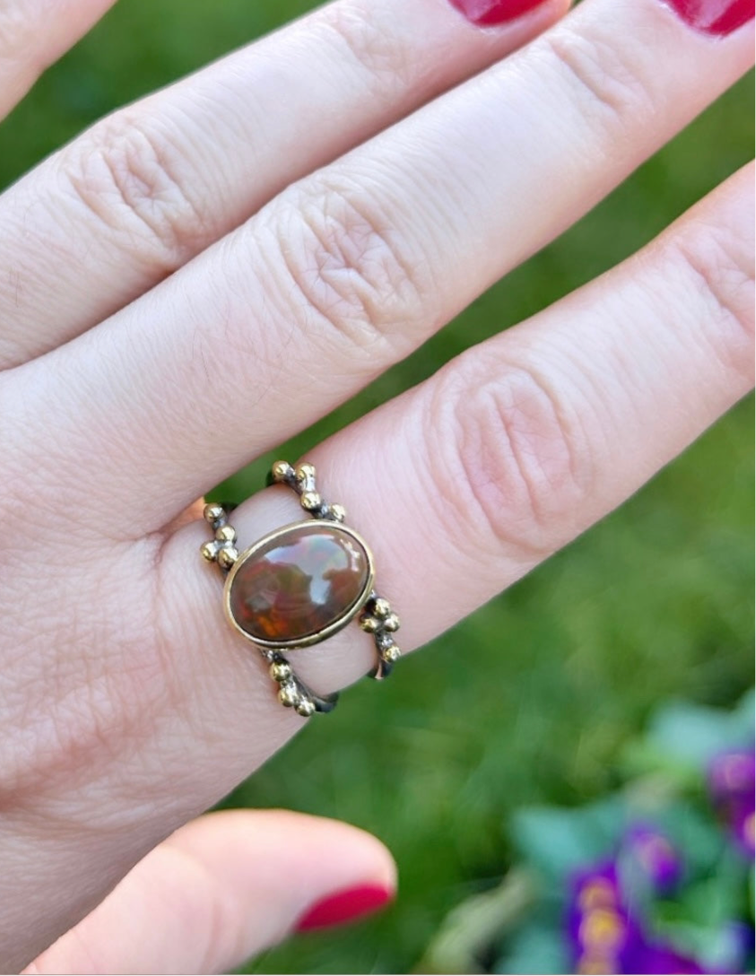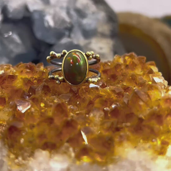 Opal, ilham ve yaratıcılığı desteklediğine inanılan bir taştır. Aynı zamanda duygusal dengeyi güçlendirdiği ve pozitif enerjiyi artırdığı söylenir. Bu benzersiz yüzük, sadece estetik bir şıklık sunmakla kalmaz, aynı zamanda ruhunuza da iyi gelir.